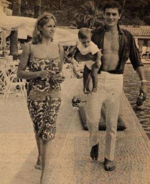 DEBAJO EN JUNIO DE 1966 EN SAINT-TROPEZ ALAIN Y NATHALIE CON ANTHONY Y NATHALIE, LA HIJA DE ELLA CON SU ANTERIOR PAREJA.