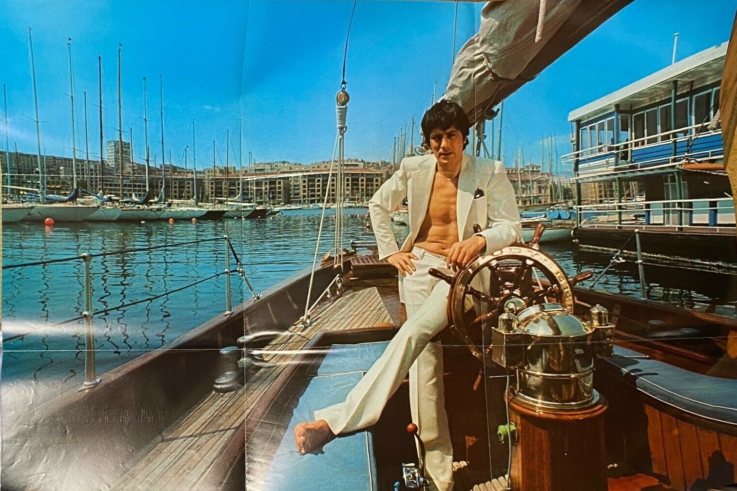 Con Alain Delon creíamos que lo habíamos visto todo, y como Chateau de la Mogere, la estrella logró un gran giro cómico. Conocíamos el excelente ambiente en el set de "El retorno de Casanova", pero verlo semidesnudo... Pero, en realidad, ¿por qué Delon no lleva nada debajo del abrigo? Debes saber que en el siglo XVIII esa estratagema era muy popular entre los seductores. El rechazado Don Juan entró de noche en la casa de la bella Desiree haciéndose pasar por el amante de turno. En este caso, Alain Delon (Casanova) ocupa el lugar de Wadeck Stanczak (Lorenz) en la cama de Elsa (Maxcolina). Pero temprano en la mañana, tiene que huir y lo único que le queda es vestirse, desnudo como un gusano, con el abrigo largo que le ha prestado su rival. Ahí lo tienes, Delon a la vuelta de la esquina, listo para contrarrestar. Edouard Niermans, el director, dio instrucciones a los camarógrafos: — Casanova debe estar desnudo. No olvidemos que apenas tuvo tiempo de envolverse en la larga capa de su rival. No se ve ropa debajo. Hiromi, la pequeña asistente de dirección japonesa, que pasaba por allí, ¡fue testigo de privilegio! — Quería facilitarte el trabajo, sonrió Delon. Ya que querías tenerme desnudo, ¡ahí lo tienes! Pero Mimi Gayo, la tocadora, tiene que hacer algunos ajustes antes de que el director grite ¡Acción! .. Y mientras ella se pone el abrigo, Delon tiene que proteger su privacidad... con su sombrero. Borraré el neumático. — Soy un símbolo sexual, pero aun así, ¡no tienes que mostrárselo a todo el mundo! Cuando te dijimos que éramos felices...