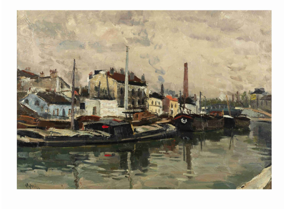 TAKANORI OGUISS (1901-1986) Barcazas atracadas en el Canal Saint-Denis firmado "Oguiss" (abajo a la izquierda) óleo sobre lienzo firmado "Oguiss" (abajo a la izquierda) óleo sobre lienzo 65,3 x 92 cm (25 11/16 x 36 1/4 in) Notas a pie de página: 荻須-高徳(1901-1986) 圣马丁水道上的游艇 帆布油画 Procedencia Colección Harry Baur, 1930. Venta, París, Ader - Picard - Tajan, 18 de marzo de 1988, lote 114. Exposición París, Didier Imbert Fine Art, '20 ans de Passion' Alain Delon, Peintures, primavera 1990, pp. 110-111, no 39, ill. La autenticidad de esta obra ha sido confirmada por Madame Emiko Oguiss Halpern y Les Amis d'Oguiss. Esta obra está registrada con el 301 en el Catálogo razonado de Takanori Oguiss. La autenticidad de esta obra ha sido confirmada por la Sra. Emiko Oguiss Halpern y Les Amis d'Oguiss. Esta obra está registrada con el 301 en el Catálogo razonado de Takanori Oguiss. Este lote está sujeto a los siguientes símbolos de lote: AR AR Mercancía sujeta a Prima Adicional por Derecho de Reventa de Artistas.